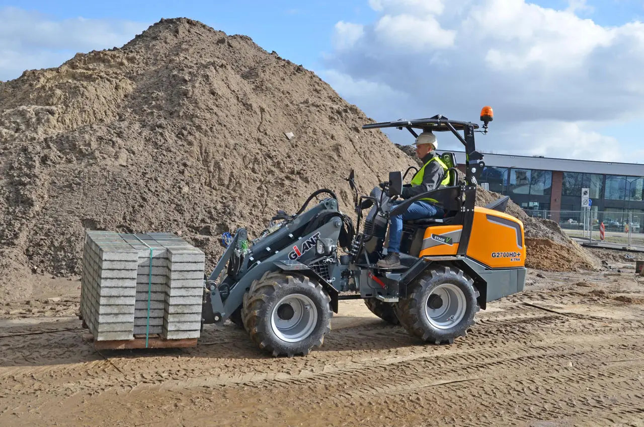 De Giant G2700 HD is een krachtige wiellader met hoog hefvermogen en uitstekende stabiliteit. Perfect voor zwaar werk in bouw en landbouw.